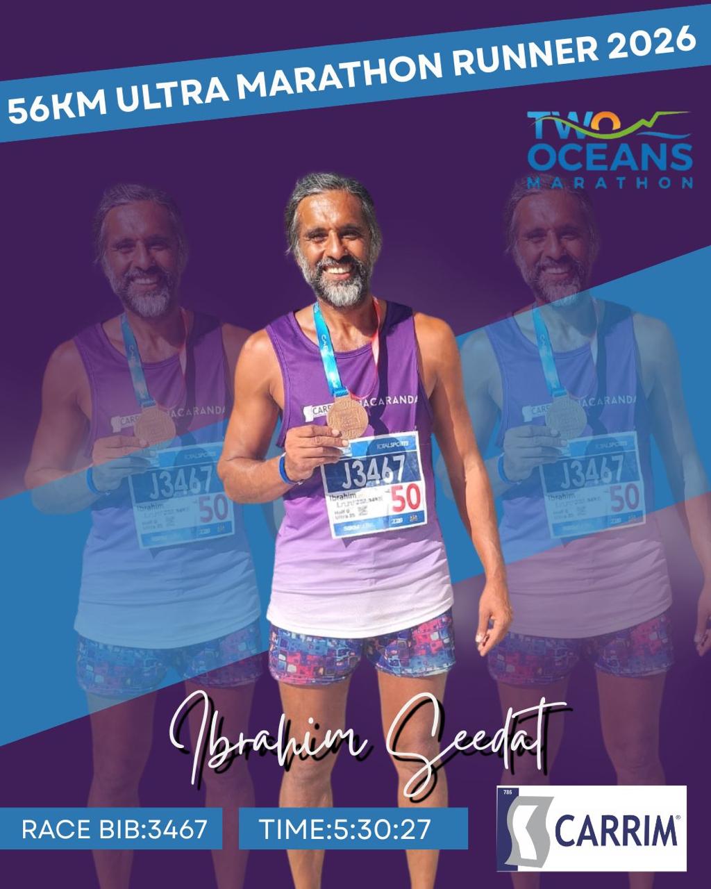 Another inspiring moment came from veteran runner Ebrahim âIBâ Seedat, who completed his 26th consecutive Two Oceans Ultra Marathon. What makes Seedatâs achievement even more remarkable is that he runs the demanding race barefoot, a feat that continues to inspire runners across the community.